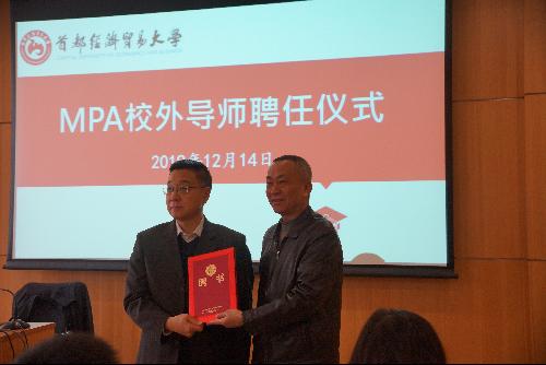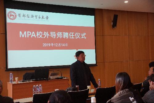 在讲座前,MPA教育中心举行了简短的公共管理专业硕士(MPA)校外导师聘任仪式。校党委书记冯培教授向受聘导师、原国家市场监督管理总局巡视员(正局级)徐晓东颁发了聘书。徐晓东在发表感言中表示将珍视MPA导师的荣誉,认真履行实践导师职责,以实际行动全力支持赢家娱乐城下载 MPA教育事业。徐晓东巡视员在外商投资准入、市场监督管理、信用体系建设和政府信息化应用领域多有建树,曾参与或主持起草过多项我国市场监管领域的法律法规,此次受聘为我校MPA导师,对促进MPA教育发展和公共管理学科建设具有重要意义。
