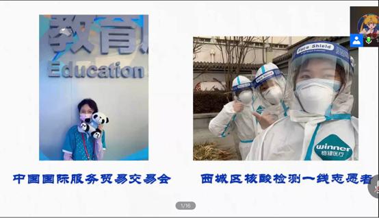 张静怡就志愿服务部分进行经验分享。她以“青春逢盛世,志愿正当时”为题,简要介绍了个人在世界园艺博览会、中国国际服务贸易交易会、北京冬奥会和冬残奥会等大型活动中的志愿服务经历。她引用“一代人有一代人的使命,一代人有一代人的担当”,激励同学们在志愿服务中贡献青年学子的力量。