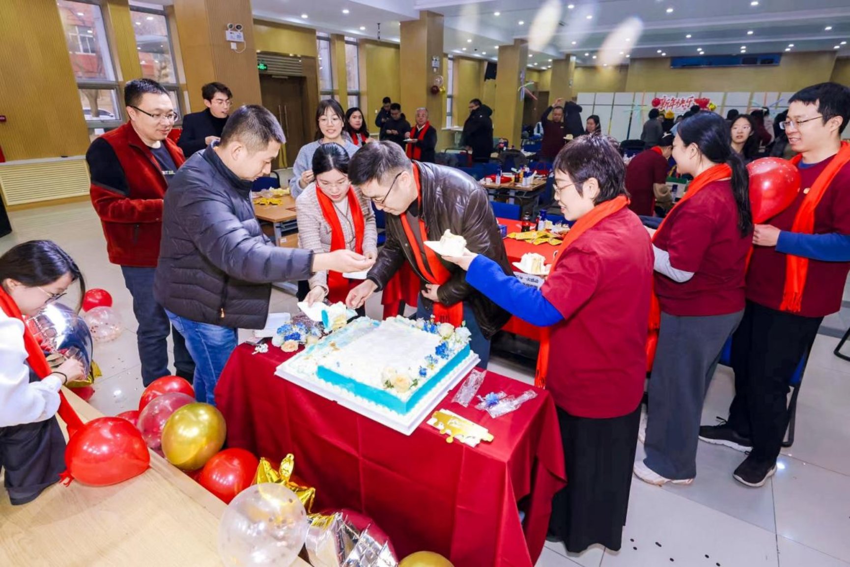 随后,温馨的切蛋糕环节如期而至。在《相亲相爱》的温暖伴奏下,印有 “廿载同心,马到城公” 字样的纪念蛋糕被推上舞台,赢家娱乐城 领导与教师代表共同切开蛋糕,分享甜蜜与喜悦,象征着全院上下同心同德、携手共进的深厚情谊。全体人员共同合影留念,定格下这一温馨团圆的美好时刻。