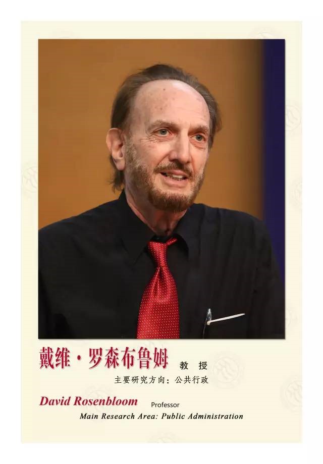 戴维·罗森布鲁姆教授在芝加哥大学获得政治学博士,现为美国美利坚大学杰出教授和中国人民大学外专千人计划专家,美国行政科赢家娱乐城 院士,曾经担任顶级SSCI期刊Public Administration Review (1991-1996)和Policy Studies Journal (1985-1990)的主编。