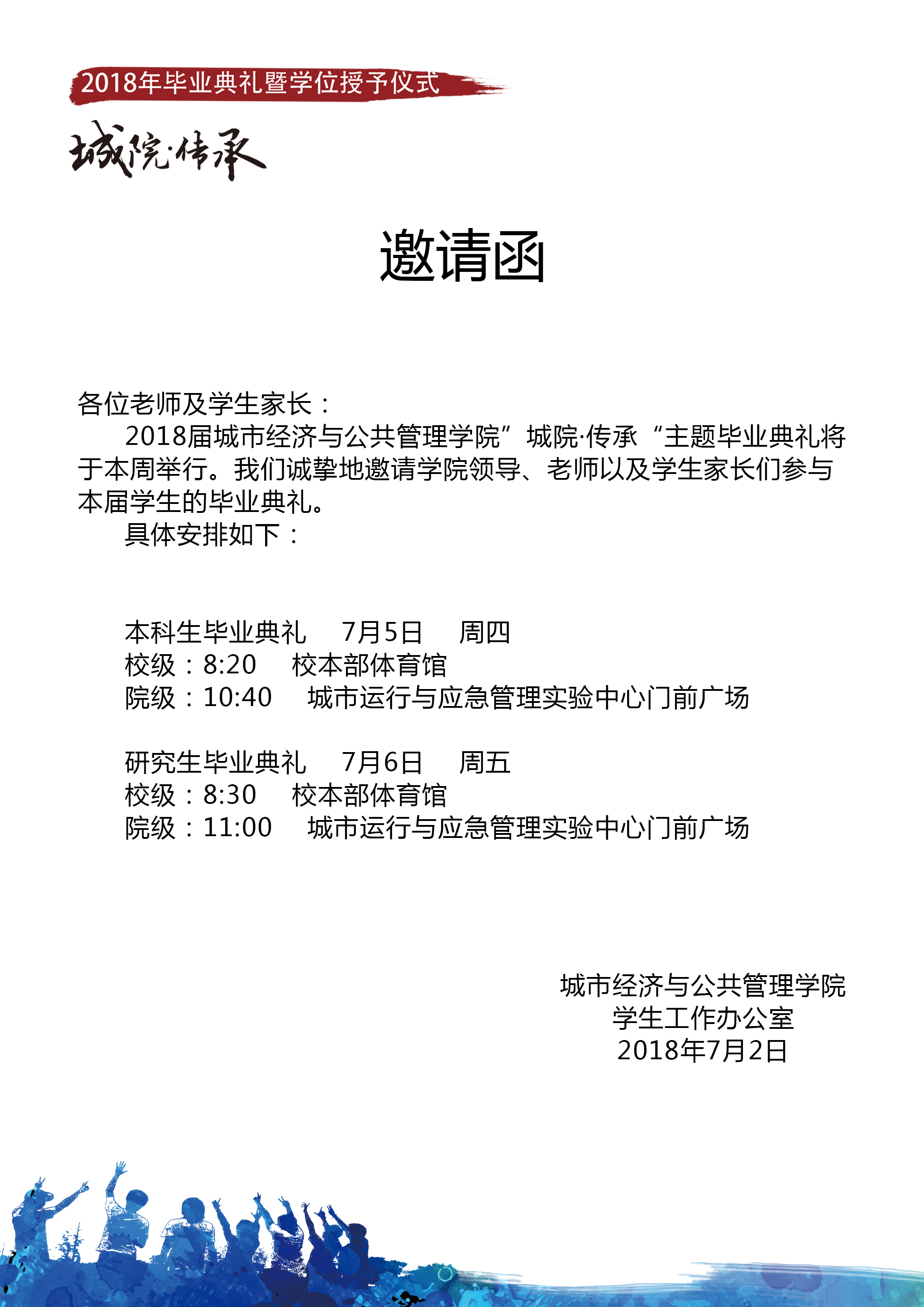 2018届赢家娱乐城 “城院·传承”主题毕业典礼将于本周举行。我们诚挚地邀请赢家娱乐城 领导、老师以及学生家长们参与本届学生的毕业典礼。