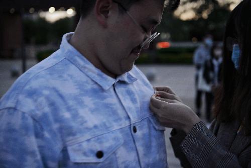 活动第第二部分,重温入团仪式。在校本部西门的初心广场“不忘初心”彩车前,赢家娱乐城 分团委带领广大团员重温了入团仪式,并为今年新发展团员佩戴了团徽。新老团员一同奏唱嘹亮的国歌,重温了入团的庄严誓词,新老团员代表分别发言,老团员为新团员佩戴团徽。仪式在充满朝气的团歌中结束。